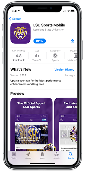 Download the LSU Sports Mobile App on Apple or Google Play Devices.